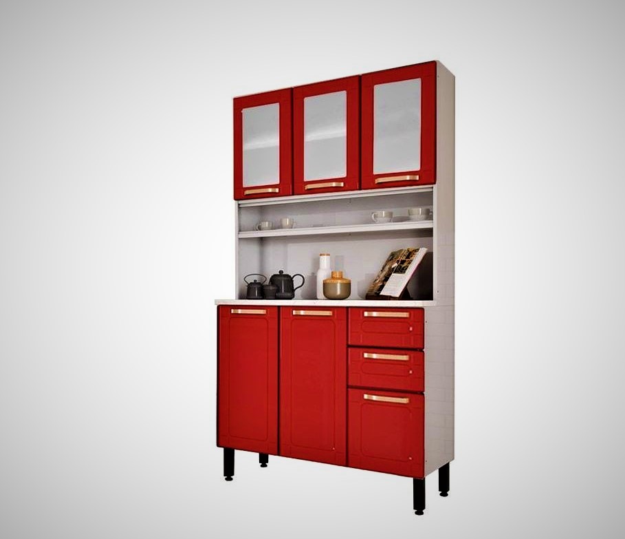 6 Portas 3 Vidros 2 Gavetas Colors, Côr Vermelho, da Bertolini, Medidas: Alt 1,917m Larg 1,050m Prof 0,432m