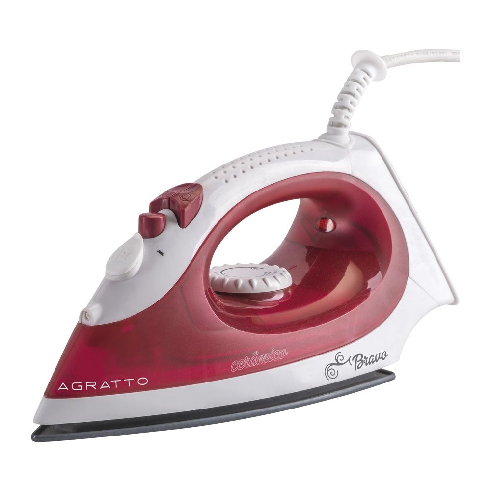 Ferro de Passar Bravo Cerâmico FC-01, 127V, Côr, Agratto, com base antiaderente, cabos com reforço e alça ergonômica, Design compacto e leve, para passar as roupas sem se cansar, Ajuste para diversos tipos de tecidos, a ponta dos ferros são arredondadas para evitar perfurações e o arrancar botões e luz indicadora de funcionamento.
