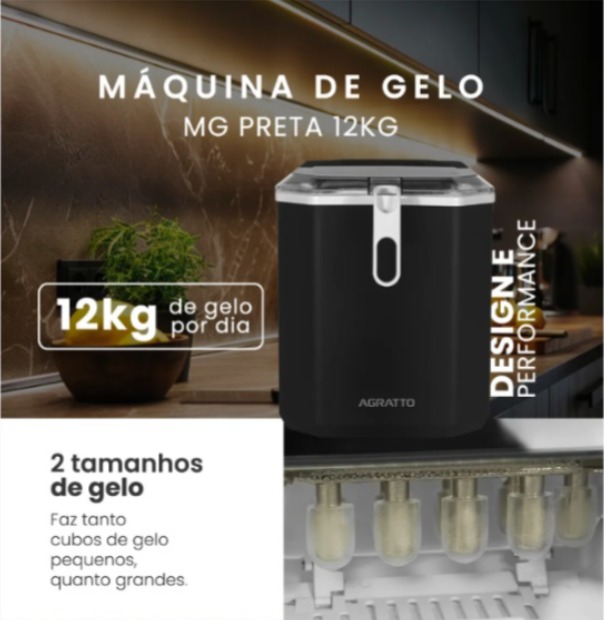 Maquina de Gelo MG 01 12Kg 100W 127v 60Hz Preto Agratto
