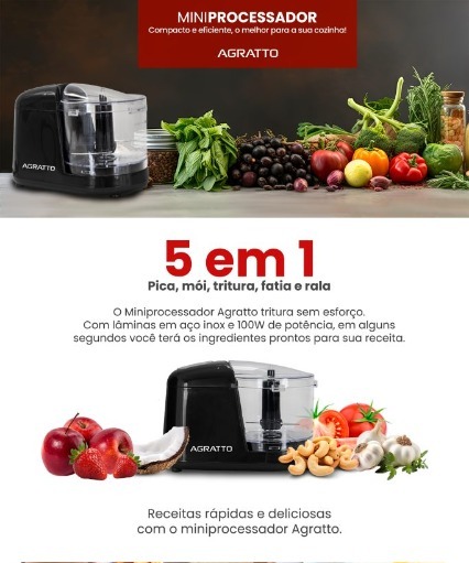 Miniprocessador AMPRO1I.01 350w 100w 127V Preto Agratto