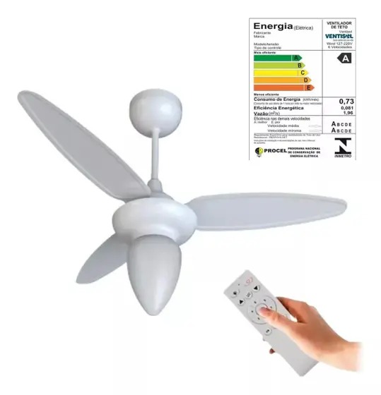 Ventilador Teto Wind Inverter 3 Pas BR Controle Remoto Bivolt Branco Ventisol