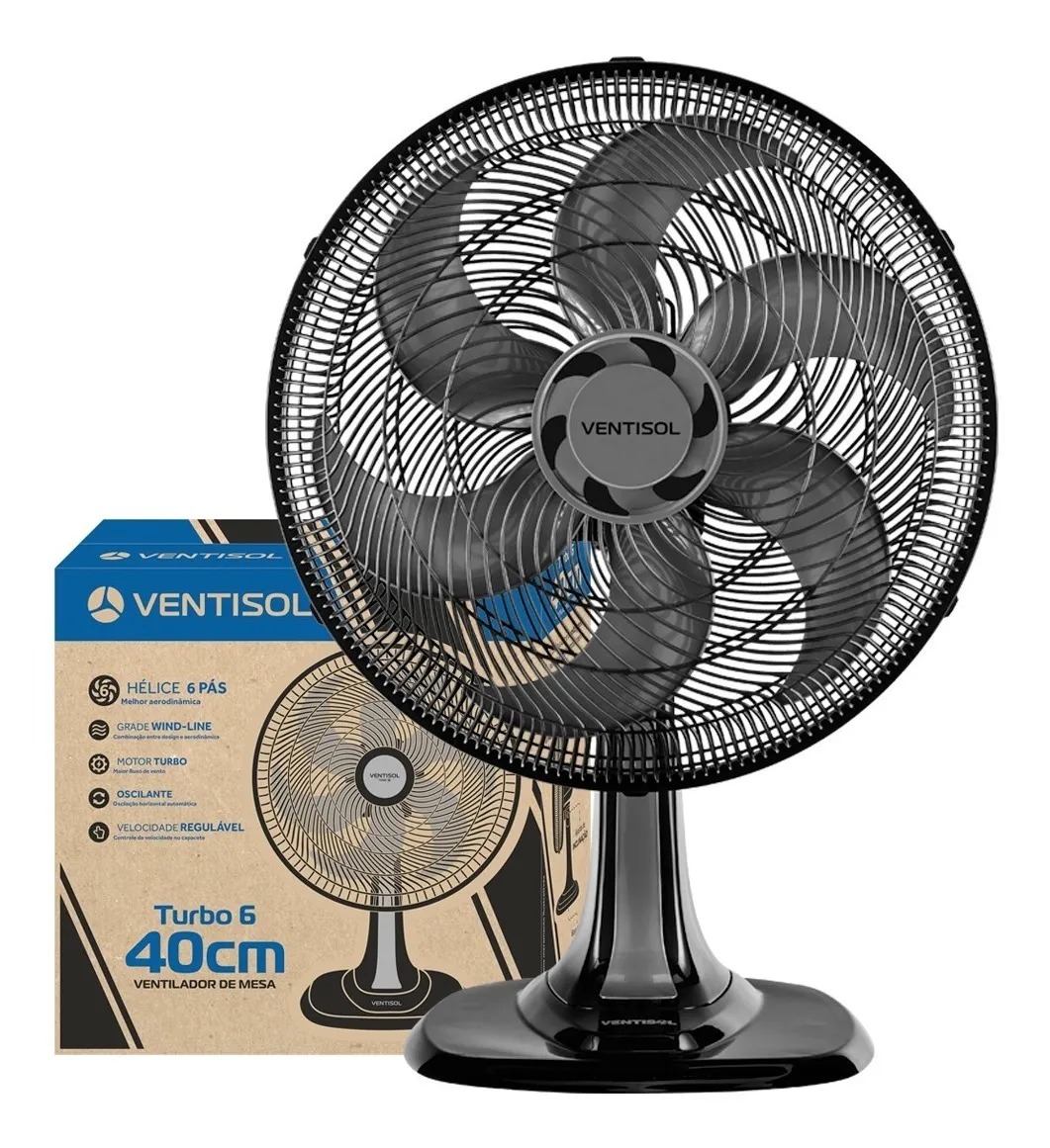 Ventilador Osc Mesa Turbo 6P 40cm 80W 127v Preto Ventisol