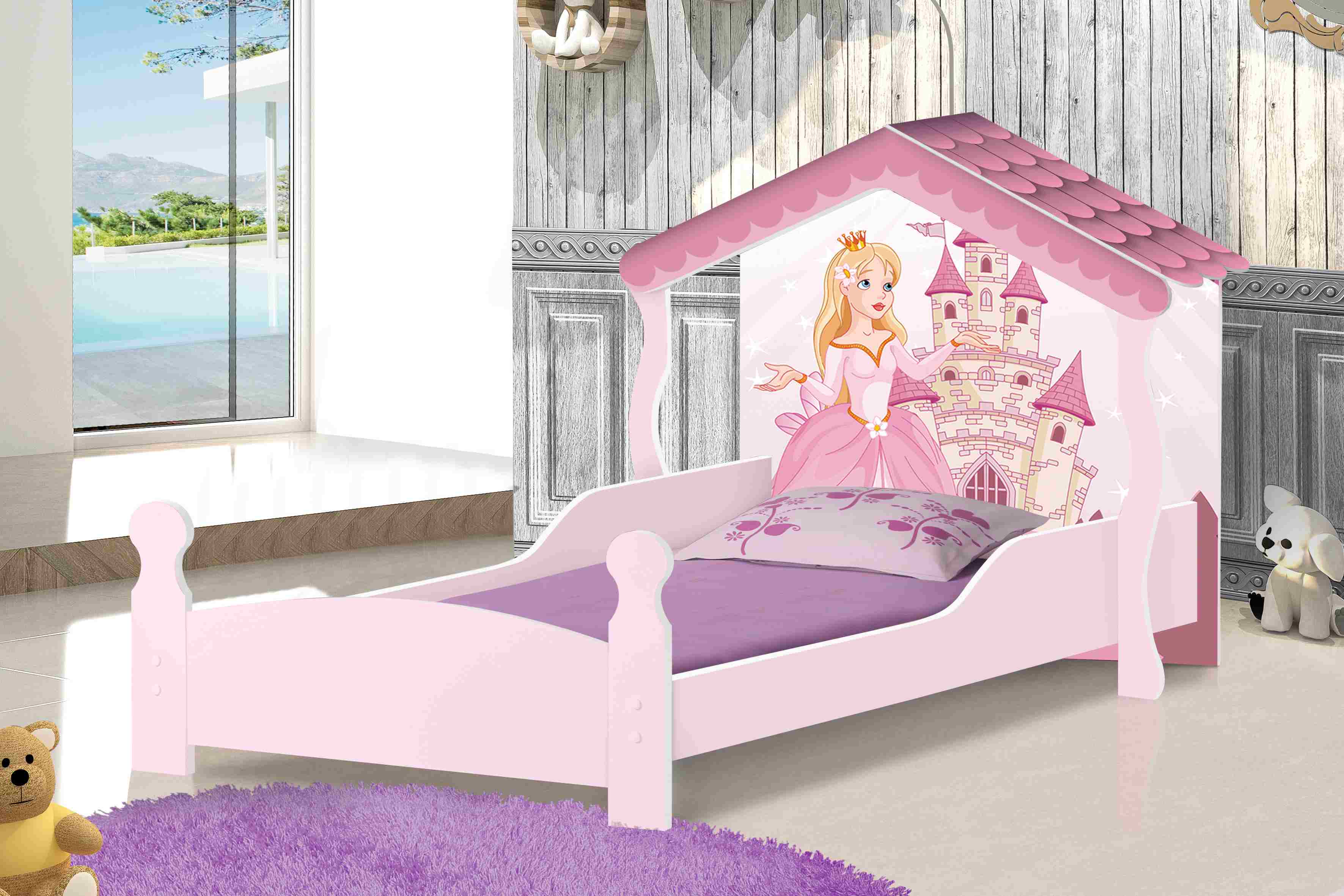 Cama Solteiro Casa Princesa Branco.Rosa J A Moveis