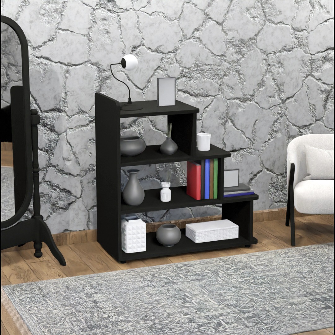 Estante Degrau Multiuso 3 Prateleiras Preto Casa Jisa