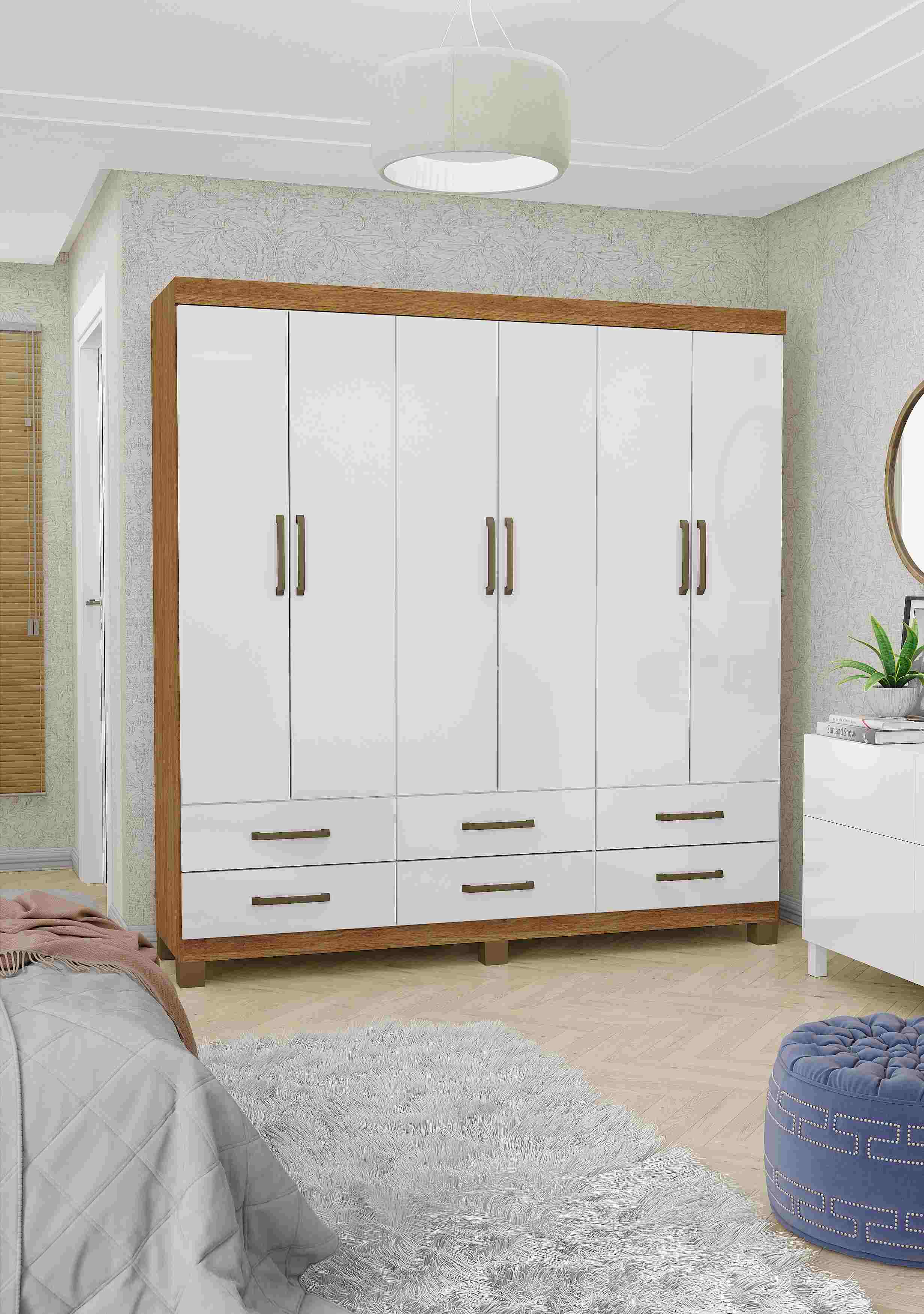 Roupeiro Dallas Gold 6P6G com Pes Cinamomo.Branco Carioca