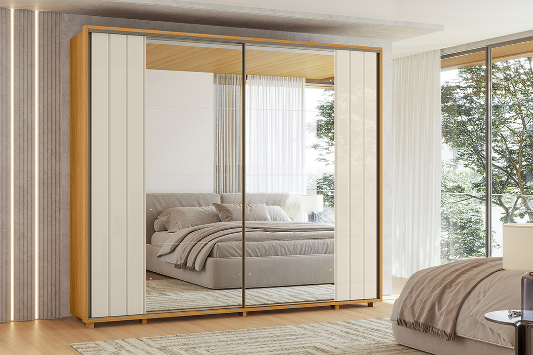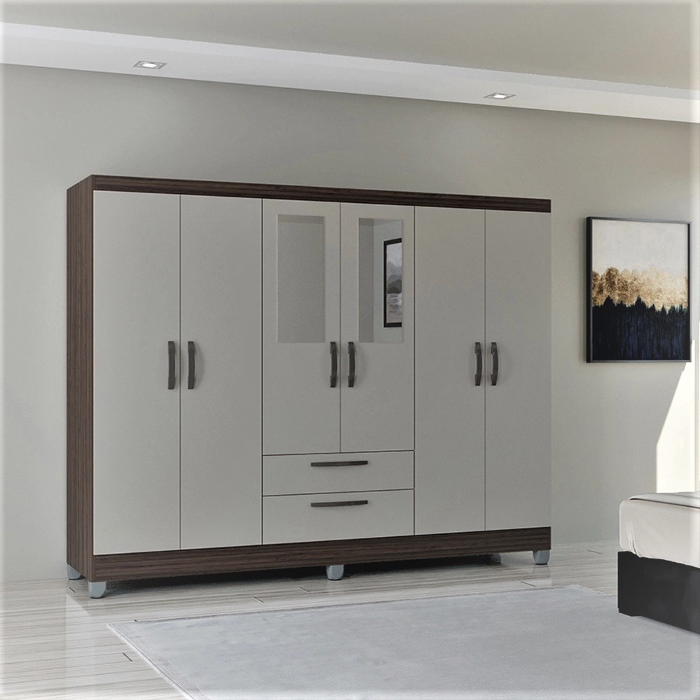 Roupeiro Dali 2P8G com 2 Espelhos Cinamomo.Off White Madetec