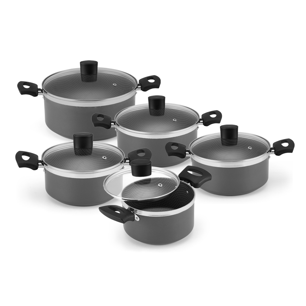 Conjunto de Cacarolas Enjoy 5 Pecas Antiaderente com Tampa de Vdiro Cinza Alegrete